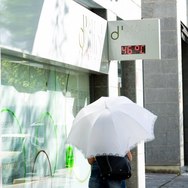 Imagen principal: Una persona camina por las calles de Lleida en un día de temperaturas muy altas. EFE.