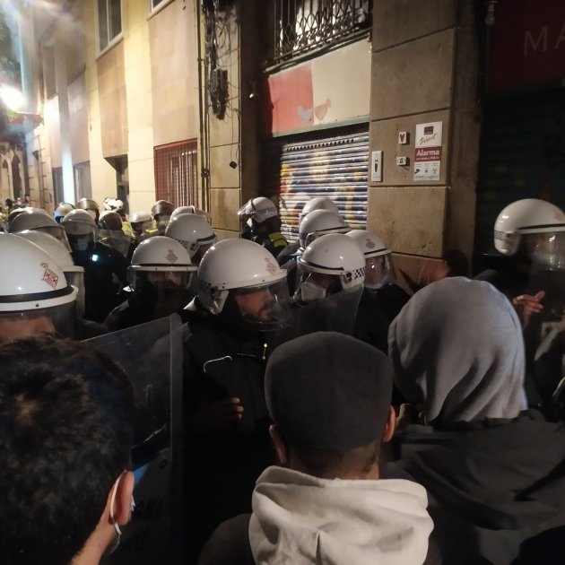 Según los Mossos, varios vecinos han denunciado la ocupación de una vivienda, y se ha enviado a agentes para hacer gestiones. Cuando han llegado han encontrado la concentración que ha actuado "con mucha agresividad y violencia" contra ellos. Los agentes han requerido el apoyo de la Guardia Urbana. Finalmente dos personas han sido denunciadas por atentado contra un agente de la autoridad. No ha habido ningún detenido ni tampoco ningún desahucio, informa la misma fuente.