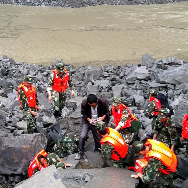 Imágenes difundidas por la televisión oficial CCTV muestran a varios soldados levantando pesadas rocas y a varias excavadoras trabajando en la zona donde estaba el pueblo, que presumiblemente ha quedado sepultado.