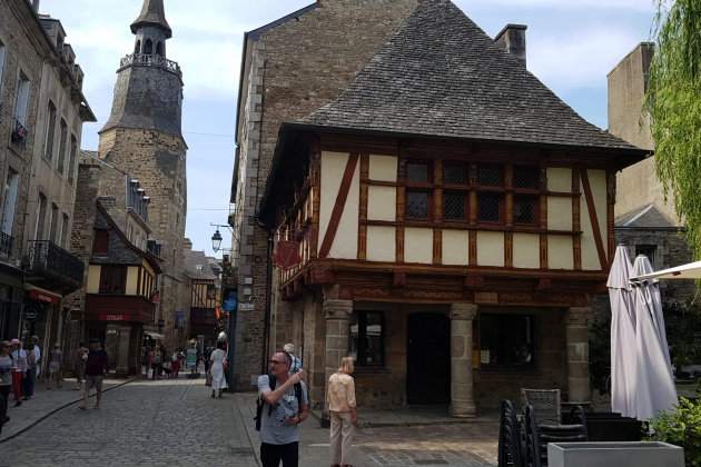 Dinan, situado en un cruce de caminos terrestres y fluviales, surgió al inicio de la Edad Media como un mercado comarcal. Sus calles y plazas, y sus edificios públicos y sus casas particulares nos mostraron una Bretaña profunda, rural y tradicional, que ha sabido mantener el espíritu de su cultura y la traza de su mundo. Los callejones en torno a la Tour del Horloge (la Torre del Reloj) y de la basílica de Saint-Sauveur, con sus construcciones de piedra y de madera, testigo del siglo de oro bretón (siglo XV), nos transportaron a una villa medieval del Atlántico europeo. Dinan, catalogado como uno de los pueblos más bonitos de Francia; fue para nosotros una experiencia sorprendente: la que te regala un pueblo que se de cuento de hadas.