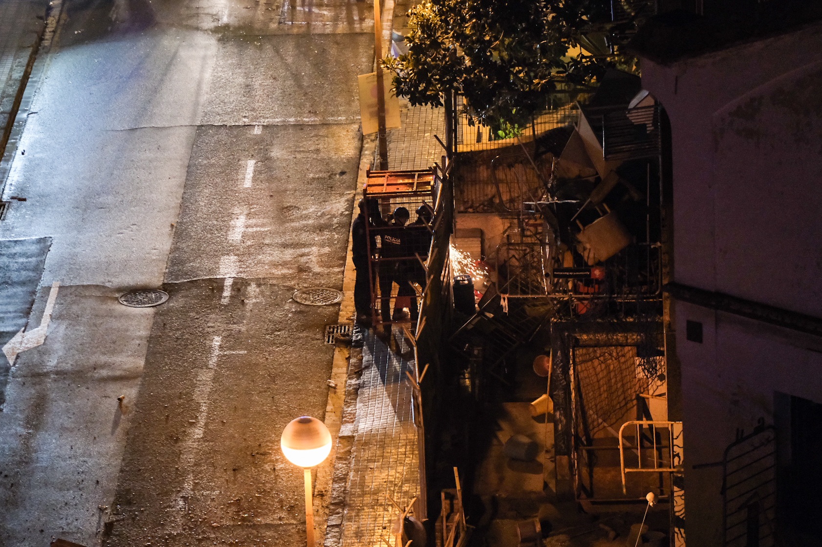La policía procede a acceder al interior de las casas okupadas después de haber hecho varios avisos por megafonía. Desde las viviendas se responde con el lanzamiento de objetos contundentes y líquido inflamable contra los agentes que están accediendo.