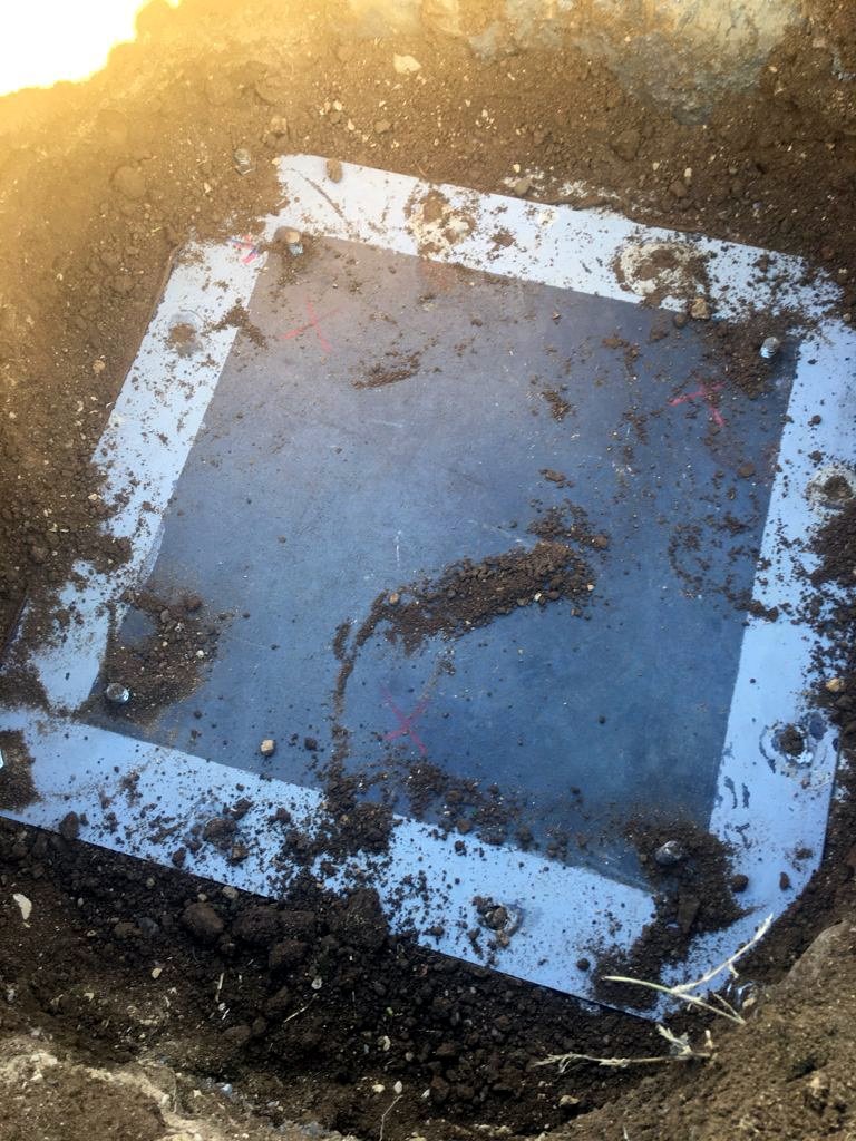 Detalle de la base de hormigón donde se sujetó el monolito, con los pernos de hierro cortados / ACN