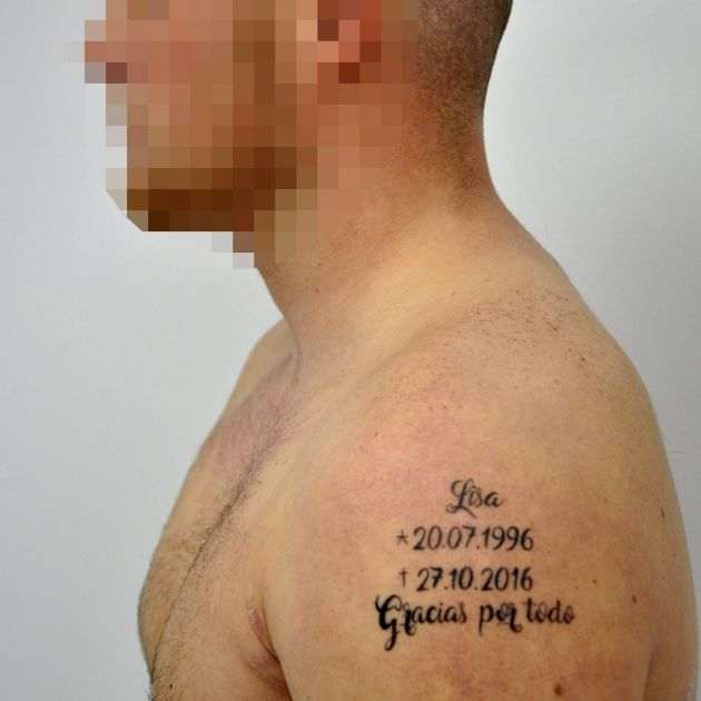 El fugitivo detenido llevaba varios tatuajes en el momento de su detención, pero uno de los más recientes y "macabro" era uno en que se apreciaba el nombre de la víctima, su fecha de nacimiento, una cruz con la fecha de 27-10.2016 –que puede interpretarse como fecha de la muerte– y un "gracias por todo", escrito en español.