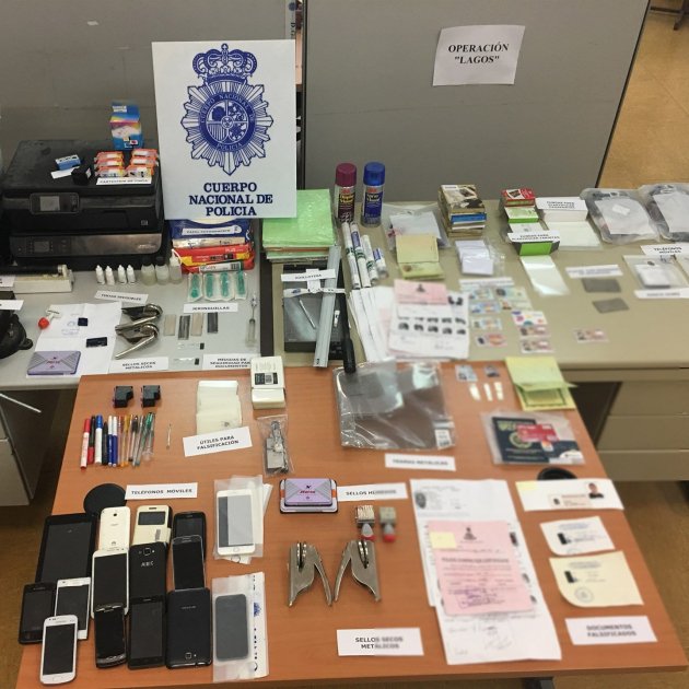 Como parte de la investigación, se ha localizado un "completo laboratorio" de falsificación de documentos en la localidad madrileña de Móstoles, dotado con ordenadores con "avanzados programas de edición", así como impresoras, plastificadora, prensa, sellos húmedos y secos de luz ultravioleta, diferentes tipos de tinta y otros materiales, así como algunos documentos ya elaborados.