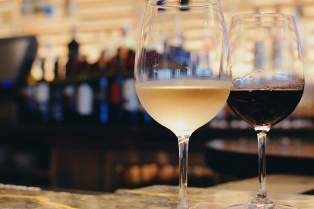 Una copa de vino blanco y otra de vino tinto / Unsplash