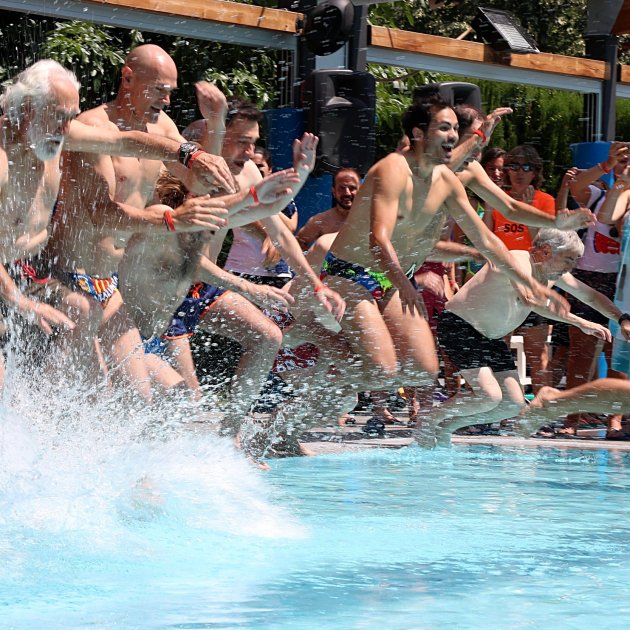 En Barcelona, las piscinas del centro deportivo Can Caralleu han acogido el acto central de la fiesta, donde una veintena de representantes políticos y culturales han protagonizado el tradicional chapuzón conjunto. Entre los participantes estaba el conseller de Afers exteriors, Relacions institucionals i Transparència, Raül Romeva.