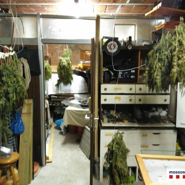 Cuando los agentes registraron el vehículo detectaron un fuerte olor de marihuana y después localizaron en el interior del domicilio grande cantidad de plantas de marihuana, en proceso de secado, colgadas en el techo del garaje, donde también encontraron cajas y bolsas de plástico llenas de ovillos de marihuana.