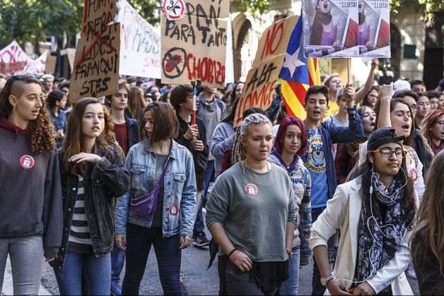 Unos 1.000 estudiantes, según la Guardia Urbana, se han manifestado este jueves por el centro de Barcelona en contra de las pruebas de evaluación final de Bachillerato que plantea la Ley Orgánica de Mejora de la Calidad Educativa (Lomce). La manifestación contra las 'reválidas', convocada por el Sindicato de Estudiantes (SE) y desarrollada sin incidentes, se ha iniciado en plaza Universidad bajo el lema 'Fuera las reválidas franquistas', y se trata de la segunda en un mes contra las pruebas.