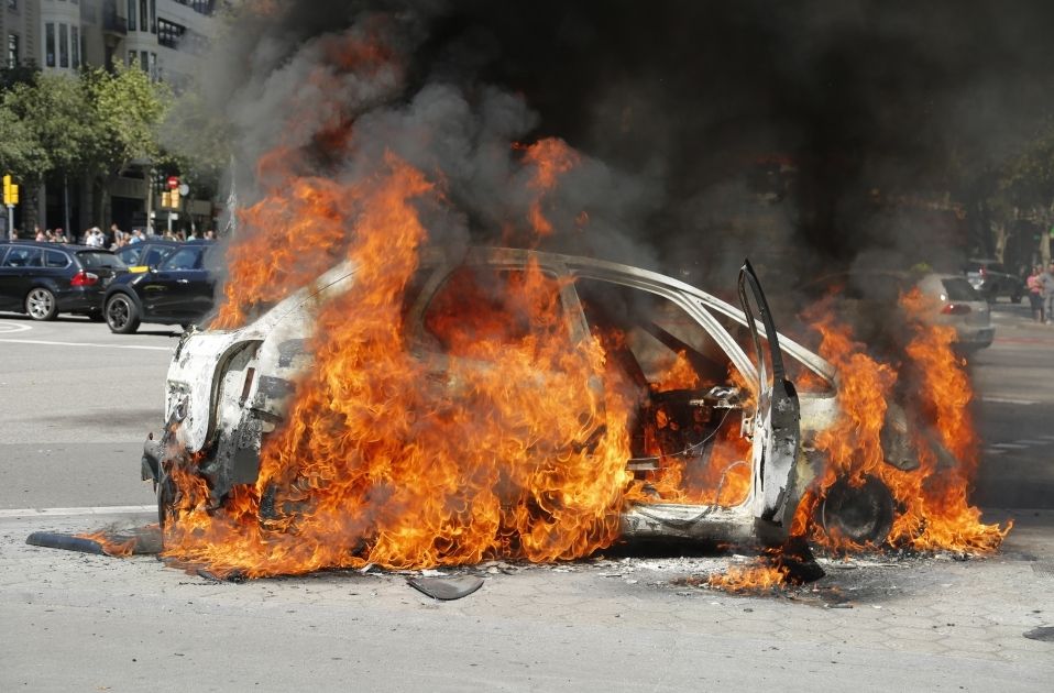 Los primeros instantes del incendio de un coche en Passeig de Gràcia / Marta E. Martí