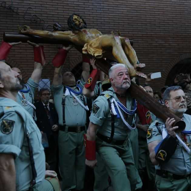 Cada año hacen la procesión del Jueves Santo sacando al Santo Cristo, después de un ritual dentro de la Iglesia que se acerca más a una maniobra militar que a una liturgia religiosa. El Ajuntament de l'Hospitalet lo había prohibido, y los ex legionarios, junto con el apoyo del rector de la iglesia de la Inmaculada Concepción, el ex militar Custodio Ballestero, han puesto una pancarta delante y han informado que hacian una manifestación. Y han salido a la calle. Y no ha pasado nada. Nada más allá de los compases militares y los gritos de "Viva España y Viva la legión".