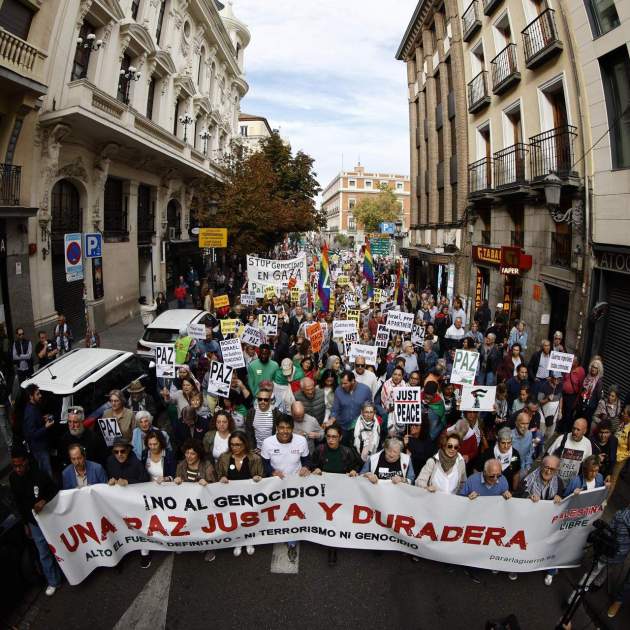 De la misma manera que en Barcelona hace unos días, centenares de personas han salido a las calles de Madrid este domingo para protestar contra lo que consideran un “genocidio” en la Franja de Gaza y para reclamar que la paz llegue para los palestinos. En la acción reivindicativa que buscaba poner el foco en la ofensiva del ejército de Israel en el enclave, que ya ha dejado casi setenta millares de muertos, también han participado personalidades del mundo de la cultura, el periodismo y la política, como el ministro de Transporte, Óscar Puente, o el ex Alto Representante de la Unión Europea para Asuntos Exteriores Josep Borrell. Todo bajo el lema 'Por una Paz Justa y Duradera'.