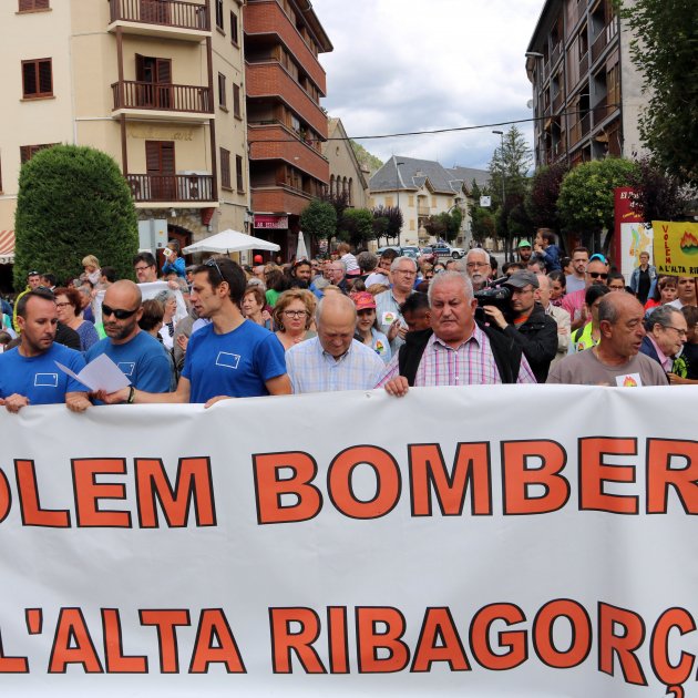 Unas 500 personas de la Alta Ribagorça y la Ribagorça aragonesa se han manifestado este viernes en el Pont de Suert para reclamar más efectivos para el Parque de Bomberos Voluntarios y así poder garantizar todas las salidas.