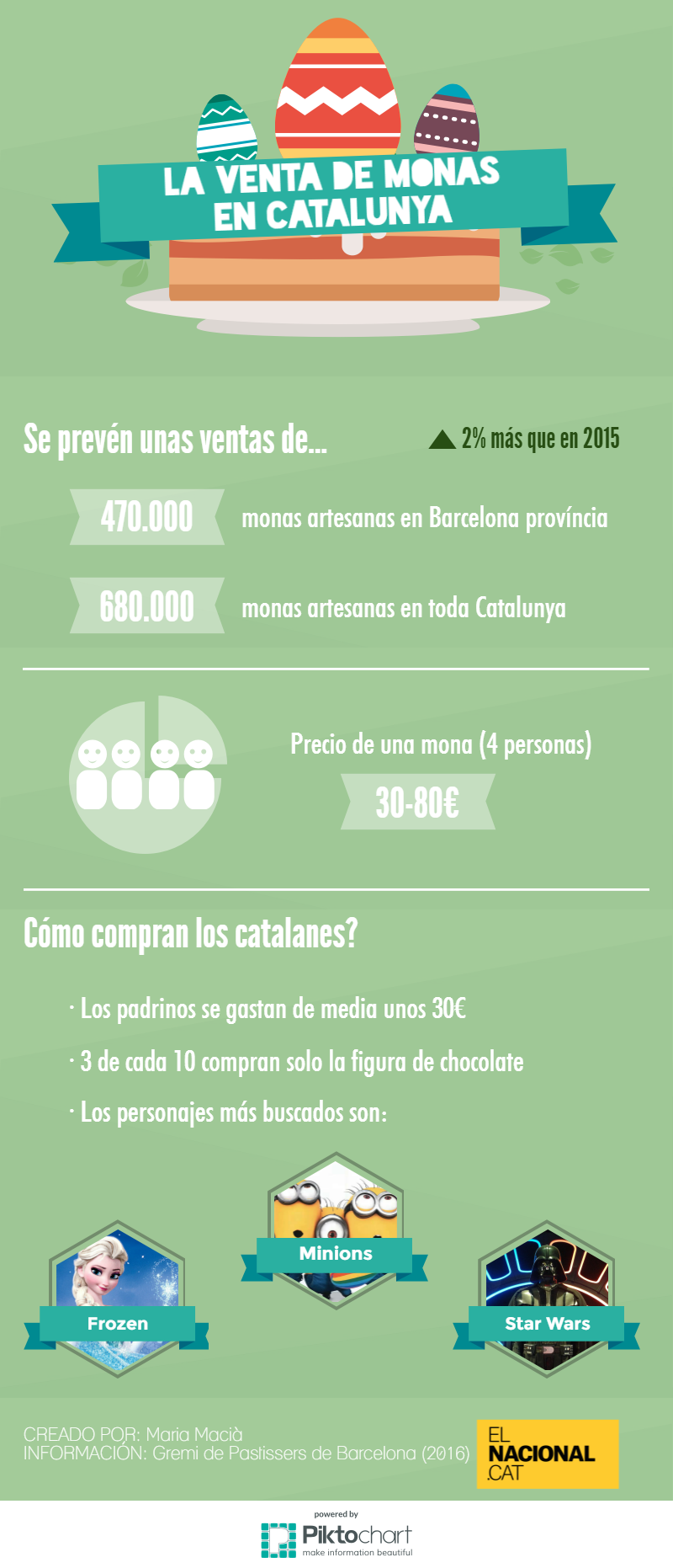 La tradición de que el padrino regale la mona para el día de Pascua no pasa de moda y sigue generando ingresos a los pasteleros año tras año. Así lo pone sobre la mesa el Gremio de Pastelería de Barcelona y Provincia, que prevé vender más de 470.000 monas artesanas en Catalunya y un total de 680.000 si se cuentan las industriales.