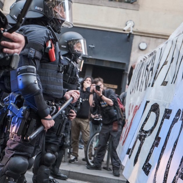 Con este compás de espera antes del desalojo, este martes colectivos prookupas organizaron una manifestación para llevar la confrontación al centro de la ciudad después de semanas de tensión en la parte alta, donde grupos de vecinos y colectivos de extrema derecha han querido desalojar extrajudicialmente las dos casas y han acusado a los okupas de generar inseguridad. La marcha arrancó desde la plaza de la Universitat, pero no pudo avanzar hacia el centro de la ciudad por el fuerte despliegue de los Mossos d'Esquadra.