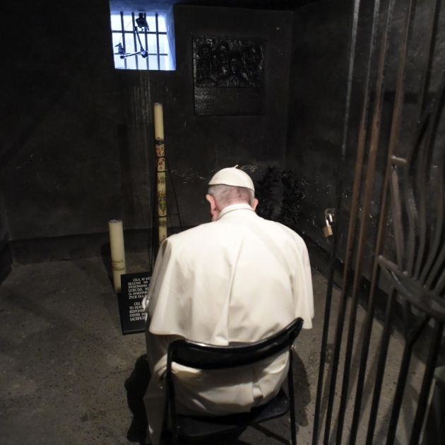 Más tarde, se ha trasladado en coche eléctrico hasta el bloque 11, donde se encuentran las celas subterráneas en las que se cerraban a los prisioneros para que murieran de hambre y sed. Allí ha rogado por los condenados, además de por el sacerdote polaco Maximiliano Kolbe, que murió a cambio de un padre de familia. El papa ha bajado también a la celda donde murió el sacerdote, el día en que se recuerda el 75 aniversario del gesto.