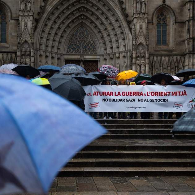 Una cincuentena de personas, según fuentes municipales, se ha concentrado este sábado en la plaza de la Seo de Barcelona (frente a la Catedral) para protestar contra la guerra en Irán. La concentración, marcada por la lluvia de este sábado, estaba convocada por la plataforma Parar la Guerra y Barcelona era una de las 150 ciudades del Estado donde se preveían movilizaciones durante este fin de semana, bajo el lema "Hay que detener la guerra en Oriente Medio". Durante el acto se ha leído un manifiesto centrado en criticar la ofensiva en Irán, y aunque la plataforma también condena el régimen de los ayatolás, han afirmado que "resulta inaceptable la intervención militar externa cuando es el pueblo iraní quien debe decidir el futuro".