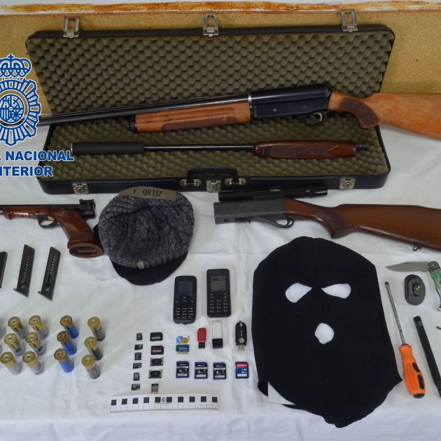 Dentro del vehículo los agentes localizaron una escopeta semiautomática con dos cartuchos en el depósito de alimentación, una pistola semiautomática de calibre 22 con cartucho en recámara, una carabina semiautomática del calibre 22 con silenciador, una mira telescópica y cargador con ocho cartuchos, munición de diferentes calibres, dos teléfonos móviles, numerosas tarjetas de memoria y 'pendrives', un llavero de autodefensa, tres navajas y un pasamontañas.