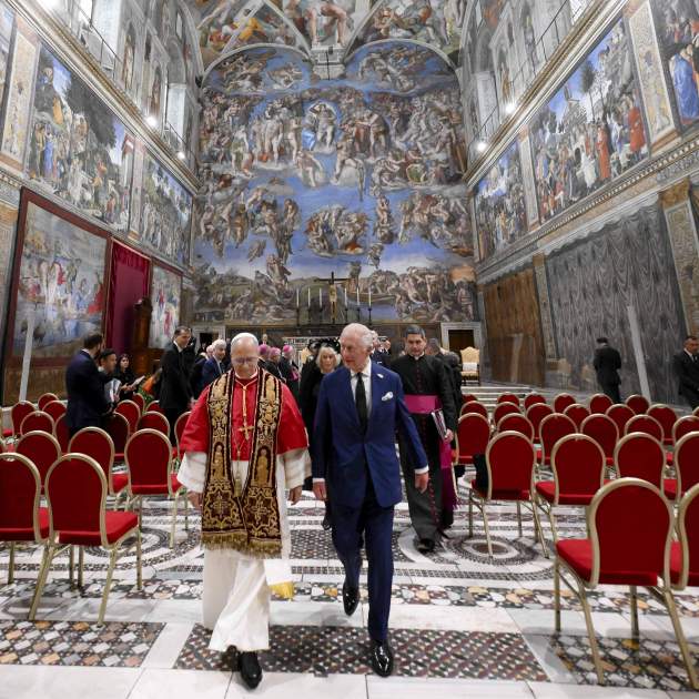 La ceremonia comenzó con la lectura de un texto de san Ambrosio de Milán en latín, y que los monarcas siguieron con la traducción de John Henry Newman, teólogo anglicano que se convirtió al catolicismo y que el primero de noviembre será declarado Doctor de la Iglesia. Después, el papa estadounidense, Robert Francis Prevost, y el arzobispo de York, Stephen Cotrell, presidieron la oración a los pies del Juicio Final y el resto de frescos de Miguel Ángel. ¿Por qué Cotrell y no la arzobispa de Canterbury, Sarah Mullally? Porque dentro de poco, en enero, Cotrell relevará a Mullally en el cargo de segunda autoridad de la Iglesia anglicana. La ceremonia fue tan especial que la Santa Sede decidió engalanar la Capilla Sixtina con dos frescos hechos a partir de los cartones de Rafael, maestro del Renacimiento.