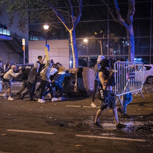 El jueves unas 15.000 personas hicieron un primer botelló y la policía no tuvo capacidad de desalojarlas, pero el viernes el número de personas se multiplicó y, de nuevo, miles de personas se concentraron desde plaza de España hasta casi a tocar la Fuente Mágica, en lo alto de la avenida de Maria Cristina. Heridos, incendios, ataques a la policía y el asalto el Palacio de Congresos es el resumen de una de las noches más violentas de este final de verano en la capital de Catalunya.