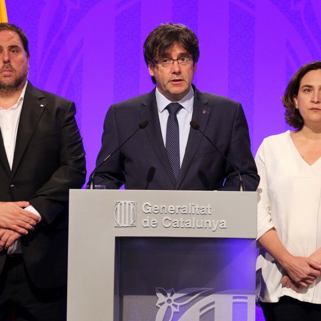 El presidente de la Generalitat ha comparecido junto con el vicepresident, Oriol Junqueras, y la alcaldessa de Barcelona, Ada Colau. Colau, visiblemente afectada y con lágrimas en los ojos, ha querido mostrar una vez más que Barcelona "es una ciudad abierta al mundo, orgullosa de su diversidad".