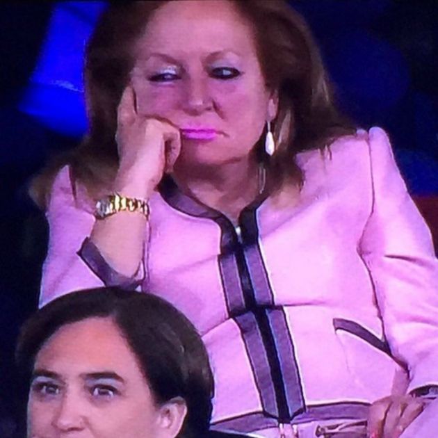 Fue la auténtica protagonista de la final de la Copa del Rey. El trending topic de la noche del domingo por la noche fue #LaMujerDeRosa en alusión a una mujer vestida de rosa y extremadamente maquillada, que se situaba en palco del Vicente Calderón justo detrás de la alcaldesa de Barcelona, Ada Colau, y del presidente del Barça, Josep Maria Bartomeu. La curiosa vestimenta no fue lo que la catapultó a las primeras posiciones de Twitter, sino su ademán de aburrimiento y los síntomas de somnolencia. ¿Pero quién es la famosa 'mujer de rosa'? Pues ni más ni menos que Ana Bollaín Domenech, la mujer del presidente de la Real Federación Española de Fútbol, Ángel María Villar.