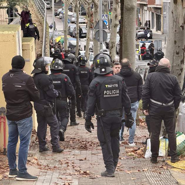 Sin graves incidentes, la policía ha podido sacar del interior el grupo de personas que habían accedido hacía poco rato. En el exterior, un grupo de vecinos se ha encarado con los okupas, echándolos y gritando consignas contra los okupas del B9. La tensión ha ido subiendo de tono e incluso agentes de la Brigada Móvil de los Mossos han tenido que separar los dos grupos: los vecinos, que se han ido concentrando al saber que se había ocupado el antiguo instituto, y las personas que salían del interior de este equipamiento, acompañadas por la policía hasta el exterior del cordón policial.