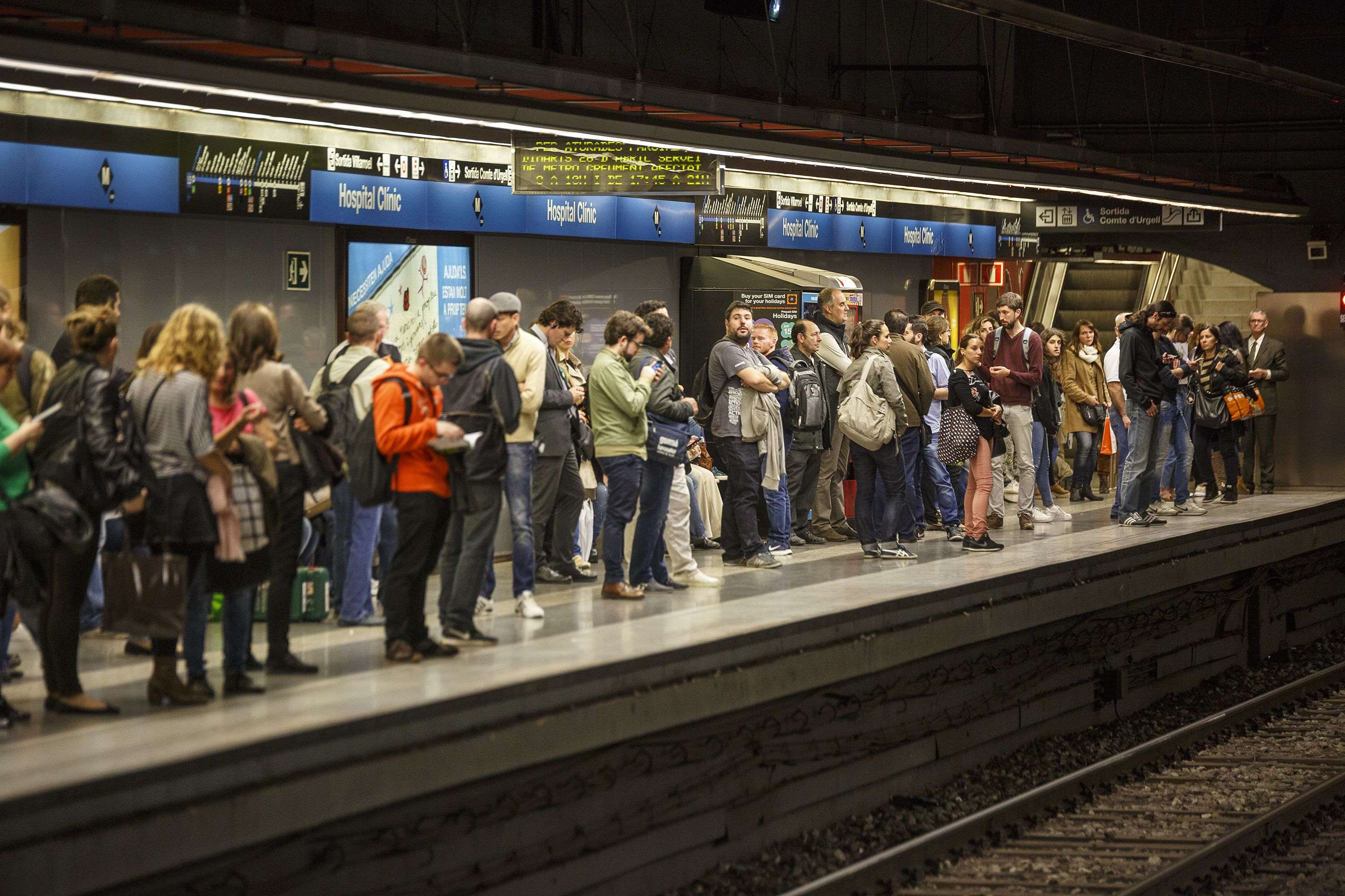 Los paros del Metro de esta tarde han vuelto a dejar a los usuarios haciendo largas esperas en los andenes. Hasta 16 minutos se han tenido que esperar en muchos casos y, por seguridad, se han tenido que hacer regulaciones en los flujos en algunas de las estaciones y convoyes.