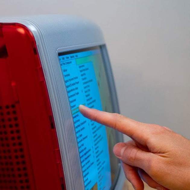 Por su puesto, no contaba con una pantalla táctil, se manejaba con un teclado y un curioso ratón en forma de disco. Sin embargo, en el año 1999 una empresa llamada Elo produjo y vendió versiones del iMac G3 con pantalla táctil a través del programa de revendedores de valor añadido de Apple para su uso como máquinas de quiosco. Ahora estamos muy acostumbrados a usar una pantalla táctil para sacar una entrada o comprar un billete de tren, pero en 1999 esto era toda una innovación.