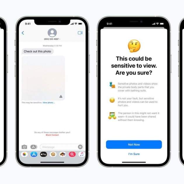 Una de las novedades más importantes para la seguridad de menores llega con los mensajes. Ahora los niños que cuenten con dispositivos Apple ligados a una familia por medio de iCloud tendrán avisos de advertencia en sus mensajes al recibir o enviar alguna imagen que pueda ser sexualmente explícita.