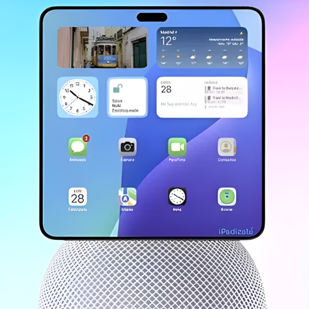 Este nuevo dispositivo de Apple se presenta como un centro de control integral para el hogar inteligente. Equipado con una pantalla cuadrada de 7 pulgadas y una cámara en la parte superior, su diseño evoca una fusión entre un marco de fotos digital inteligente y un portal de comunicación. La inclusión de una batería recargable incorporada sugiere una cierta portabilidad dentro del hogar, permitiendo a los usuarios interactuar con él en diferentes espacios.