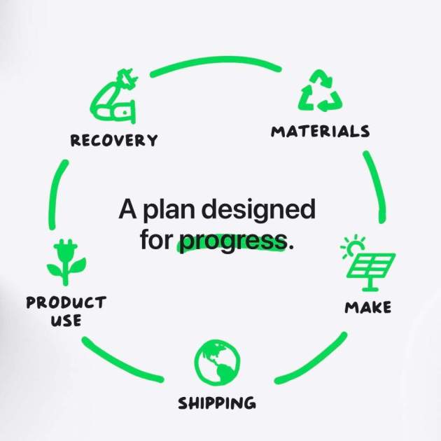 "Nuestro objetivo de producir emisiones neutrales de carbono en 2030 nos guía en todo lo que hacemos. Cada producto de Apple estará fabricado con energía limpia y con materiales renovables y reciclados. Porque la Tierra no esperará, y nosotros tampoco lo haremos."