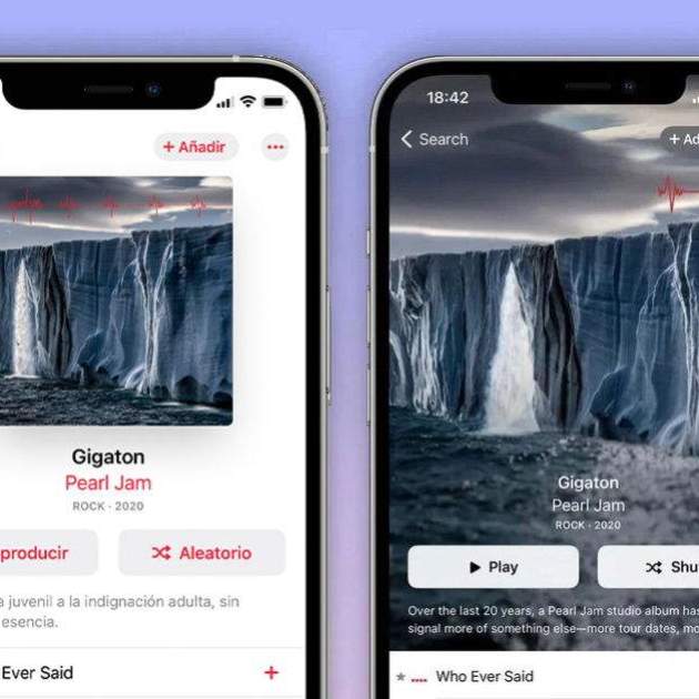 Al parecer en esta última beta de estos sistemas, Apple Music cuenta con álbumes animados. En iOS 14 la compañía ya había introducido alguna animación en sus listas destacadas, pero ahora es cada álbum individual de un artista el que puede tener estas animaciones. En la imagen de portada puedes ver cómo se ve el álbum en iOS 14.2 y cómo se ve en iOS 14.3.