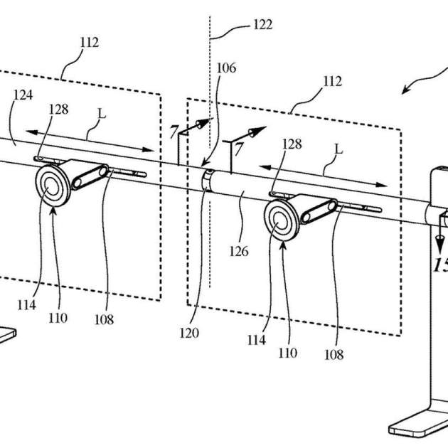 Como se puede apreciar en los esquemas compartidos, el soporte parece utilizar las mismas juntas móviles que el Pro Stand existente donde se colocan el Studio Display y el Pro Display XDR, pero los coloca sobre un rail, de forma que podamos ajustar la posición de la pantalla.