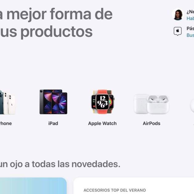 De esta forma, si accedes a la Apple Store Online utilizando cualquier navegador podrás ver cómo luce este nuevo diseño. En la página principal, aparecen los principales productos de forma similar a como se muestran en la aplicación de compra, y a partir de ahí se centran en los puntos fuertes de comprar en el Apple Store: el soporte, las ayudas y los descuentos y promociones oficiales.