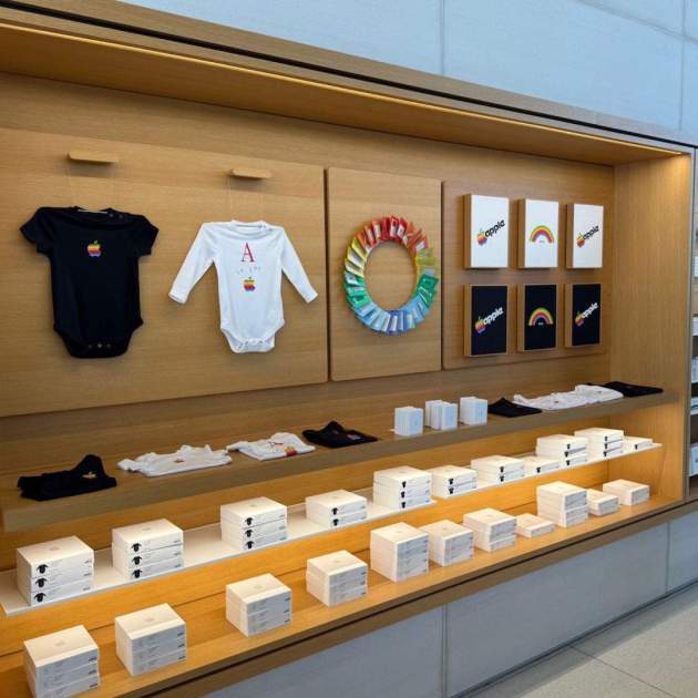 Sabemos que no sería la mejor marca en ropa ya que existen marcas que se distinguen por ello, además de que son emblemáticas en cuestión de moda y estilo. Hubo una ocasión en que se lanzaron una línea de calzado Nike con temática de Apple, aunque no lograron el éxito esperado. En el caso de WWDC 2025 se detectó que en el Visitor Center del Apple Park se lanzaron nuevas piezas de ropa, playeras y hoodies exclusivas con el logo de la manzana arcoiris, un propósito muy retro.