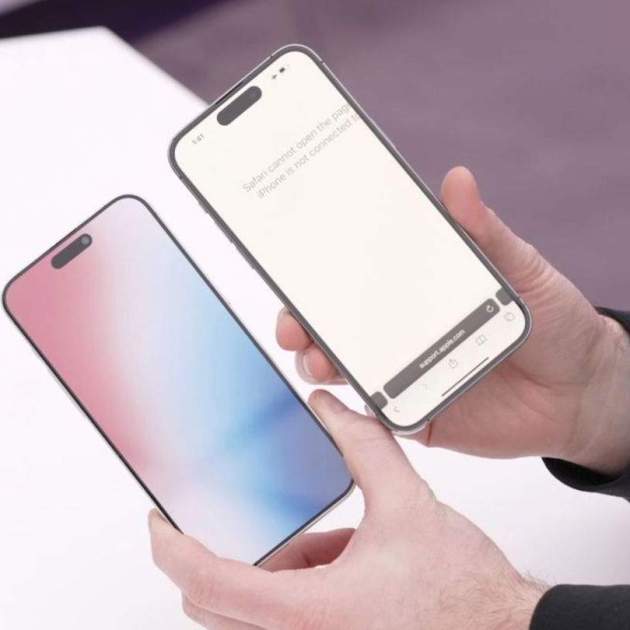 La principal diferencia y la característica perceptible más obvia de esta réplica del iPhone 15 Pro Max es que cuenta con un frontal que posee un marco o biseles laterales ultra finos. Al colocar la réplica junto a un iPhone 14 Pro Max se puede ver claramente cómo tendrá un mayor aprovechamiento frontal de la pantalla.