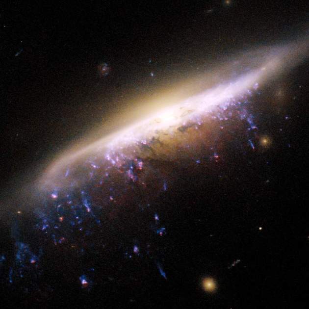 Lo que encontraron fue la galaxia tal y como era cuando el universo era mucho más joven, algo que no debería ser así. En teoría, hace 8.500 millones de años todo debería estar un poco más tranquilo. Lo más llamativo de esta galaxia es su estructura: desde el disco principal, emergen corrientes de gas salpicadas de condensaciones azules brillantes. Esos puntos son estrellas recién nacidas con una peculiaridad fascinante: no se formaron dentro de la galaxia, sino en el material que fue arrancado violentamente de ella.