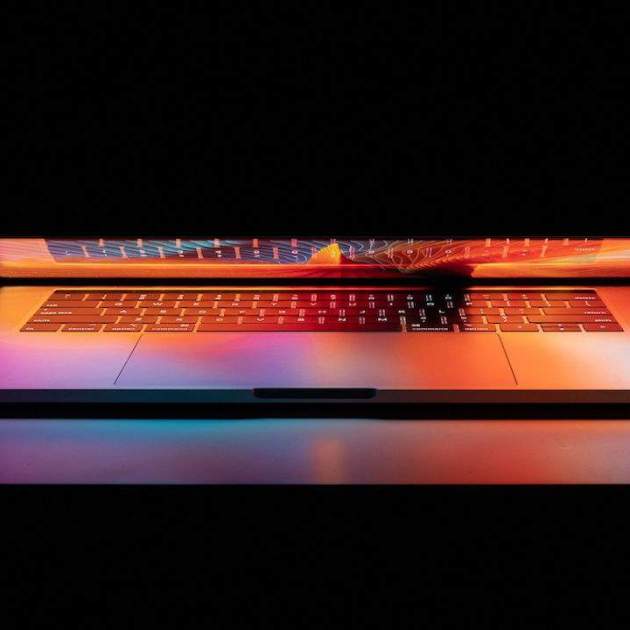 MacBook Pro en color gris espacial desde una vista aérea.