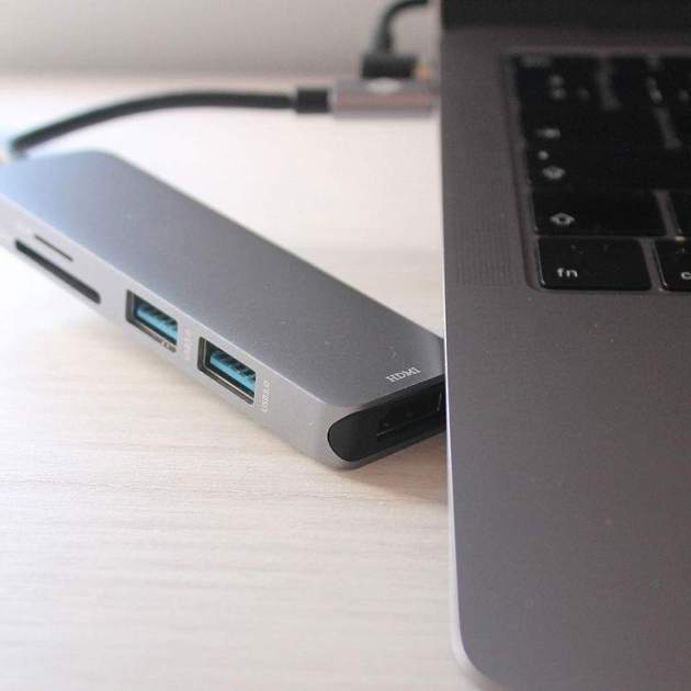 La propuesta de Dolovo destaca por el número de puertos. Tiene un puerto USB tipo C, un Thunderbolt 3, un HDMI, dos USB 3.0, un USB 2.0 y un lector de tarjetas SD / TF. Así pues, es muy completo y no le falta de nada. Es perfecto para añadir más puertos a tu portátil de Apple.