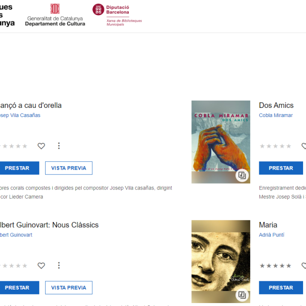 Con esta iniciativa, destacan desde la Generalitat, se permitirá "ir incrementando anualmente" el número de producciones musicales catalanas disponibles en la plataforma Biblio Digital. Así, a partir de los meses de mayo y junio de 2024, se incorporarán nuevos documentos hasta llegar a un total de 1.500 álbumes. Con esta acción se complementa el servicio presencial de préstamo de CD que ya realizan las bibliotecas públicas de manera habitual y se garantiza el acceso público digital a álbumes que podrían haber ya desaparecido del circuito de distribución comercial en soporte físico.