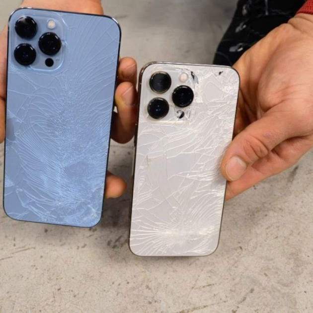 Tal como se deja ver en el vídeo, al dejar caer tres veces ambos iPhones a la altura de una mesa, no se aprecia ningún daño evidente. Mientras que a la altura de una persona hablando por teléfono, la pantalla del iPhone 13 Pro no sobrevivió y se rompió, aunque el 13 Pro Max todavía estaba bien. Ambos funcionaban perfectamente.