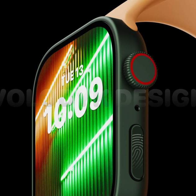 Podemos notar inmediatamente la pantalla plana, un molde con nuevos bíseles lisos y con esquinas ligeramente redondeadas que añaden sutilmente un nuevo estilo fresco, pero elegante. Además, podemos notar que ya muestra su concepto con el próximo watchOS 9 y el rediseño de la pantalla de bloqueo con nuevas tipografías y estilos. Un detalle que ayuda mucho a esta idea del próximo Apple Watch.