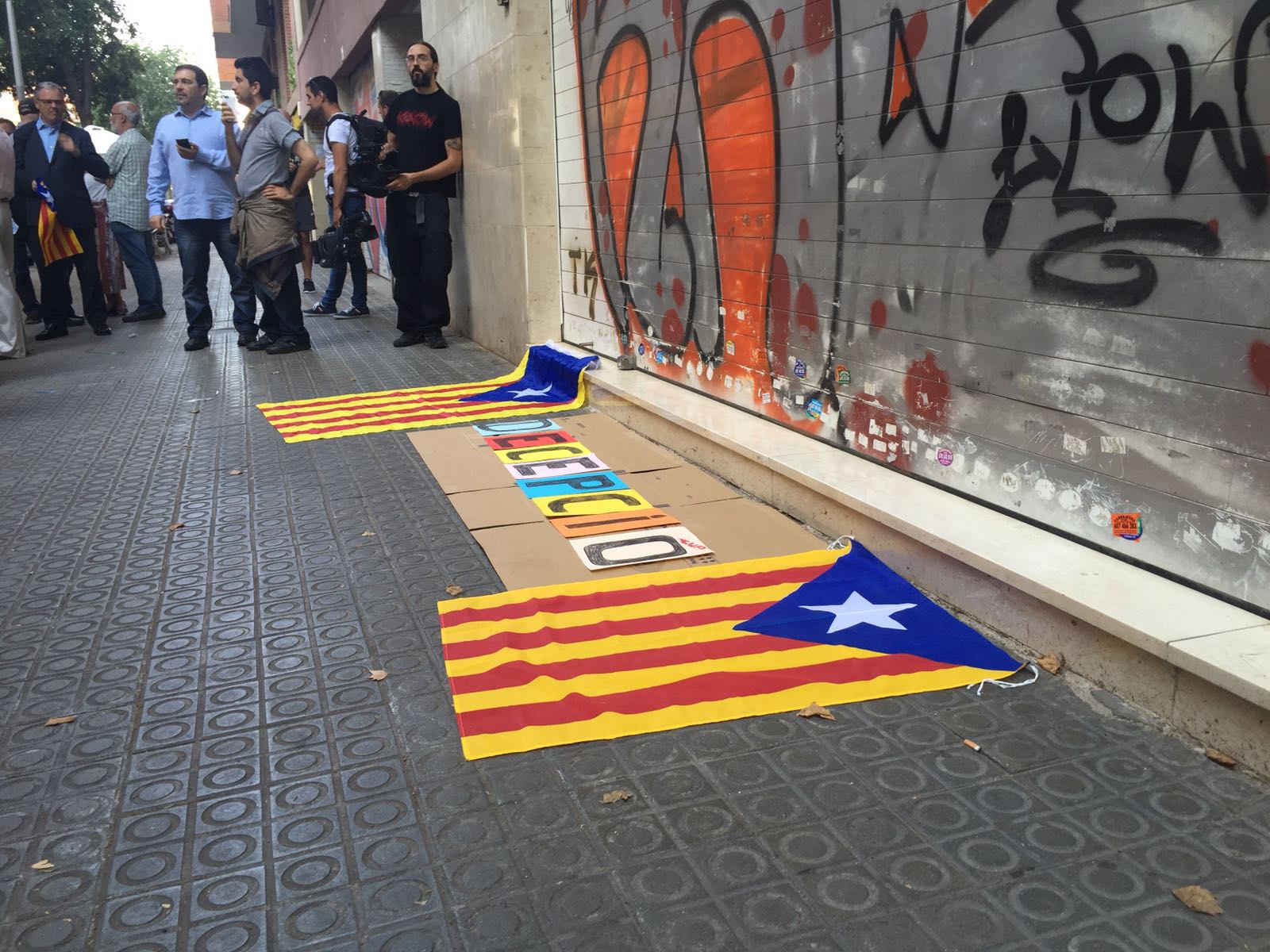 Una treintena de personas se han concentrado hacia las siete de la tarde ante la sede de la CUP en la calle Casp de Barcelona, para protestar por el veto a los presupuestos del Govern. Con gritos de independencia, han desplegado dos estelades al suelo y un cartel en que pone "decepció".
