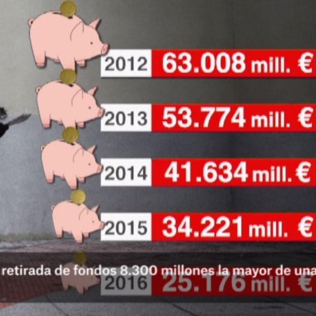 El Gobierno ha sacado 40.000 millones de la hucha de las pensiones desde 2011. En tiempos de bonanza, llegó a tener casi 67.000 millones, pero en 2012 ya se sacaron 7.000 y, año tras año, la hucha se ha ido haciendo más y más pequeña. La última retirada de fondos ha sido de 8.700 millones, la mayor parte sacada de una sola vez.