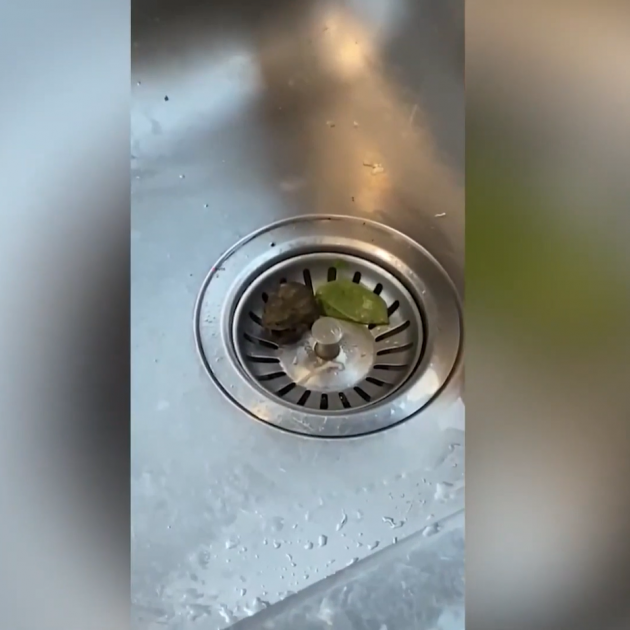 La mujer de 40 años presenció cómo la rana salía de su bolsa de espinacas que había comprado en Aldi. Mientras preparaba la comida para su familia, el anfibio saltó hasta la pila del fregadero justo cuando estaba lavando las espinacas.