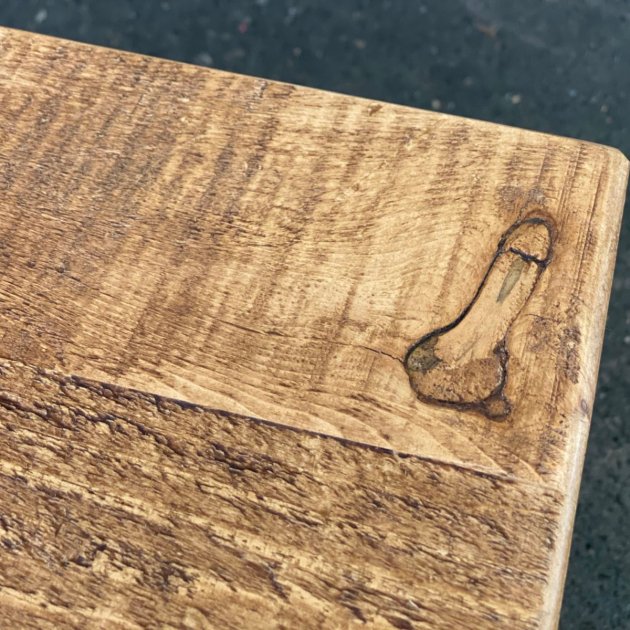 A la página web donde se prepara el soreto se puede ver a sus creadores poniendo orgullosos de su obra y se puede comprobar que la marca se encuentra en uno de los lados de la mesa. Según su descripción, está hecha a partir de pino norteamericano, y tiene un "encanto rústico" incomparable. Además, sus patas de hierro le dan el toque final, aparte de un aire industrial. Según la empresa, el mueble es de máxima calidad.
