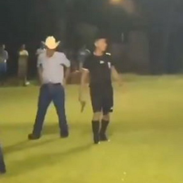 La grabación recoge varios tiros y justo después se ve en el colegiado sujetando un arma, hecho que dispersa la multitud. "¡Cómo son los árbitros!", dice la persona que ha hecho el vídeo. Mientras tanto, se puede ver como el árbitro dispara contra el césped.