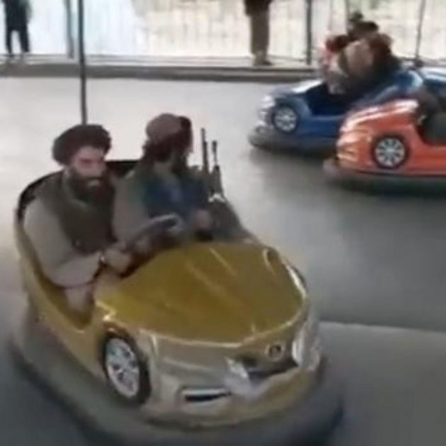 El medio de comunicación francés Mediavenir ha publicado en Twitter dos vídeos donde se ven presuntos talibanes disfrutando de un rato a los autos de choque, así como riendo un poco en los caballitos.