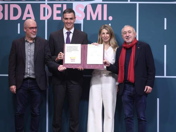 La pujada del Salari Mínim Interprofessional serà anunciada demà al Consell de Ministres, després que aquest dilluns la vicepresidenta segona i ministra de Treball, Yolanda Díaz, hagi signat l'acord amb els principals sindicats espanyols, Comissions Obreres i UGT, però sense la patronal CEOE. El president del govern espanyol, Pedro Sánchez, ha criticat l'absència de la patronal, ja que la pujada de l'SMI és "un acte de justícia social". Es tracta d'una pujada del 3,1% per 2026 que eleva el salari mínim als 1.221 euros en 14 pagues, un total de 17.084 euros anuals i 40,7 euros al dia que estaran exemptes de pagar IRPF. La pujada beneficiarà 2,5 milions de treballadors.