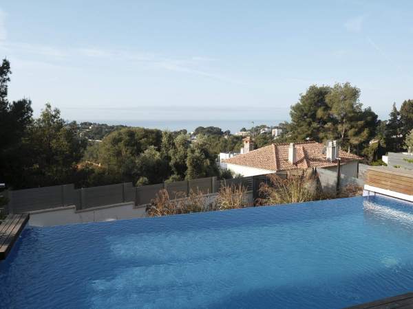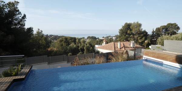 La casa compta amb piscina climatitzada infinita exterior i té un ascensor per arribar a les seves tres plantes i semisoterrani. A la planta baixa, té un menjador amb sostres alts i vistes al mar i a la piscina, així com una cuina independent també amb sortida a la terrassa. A la primera planta, té dues habitacions exteriors i dues suites amb lavabo i compta també amb una làmpada de vidre de cinc metres feta a mida al passadís.